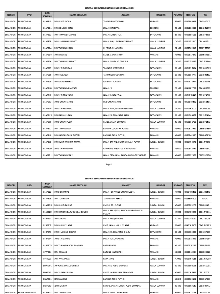 Senarai Nama Sekolah Di Selangor Pdf
